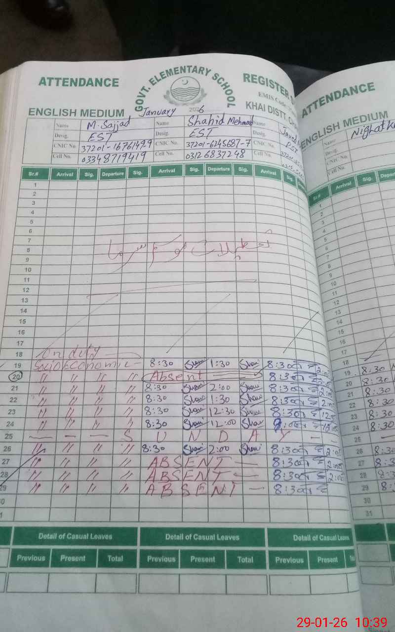 | CNIC | Full Name | Designation | R/C | Absence During Last Calender Month |