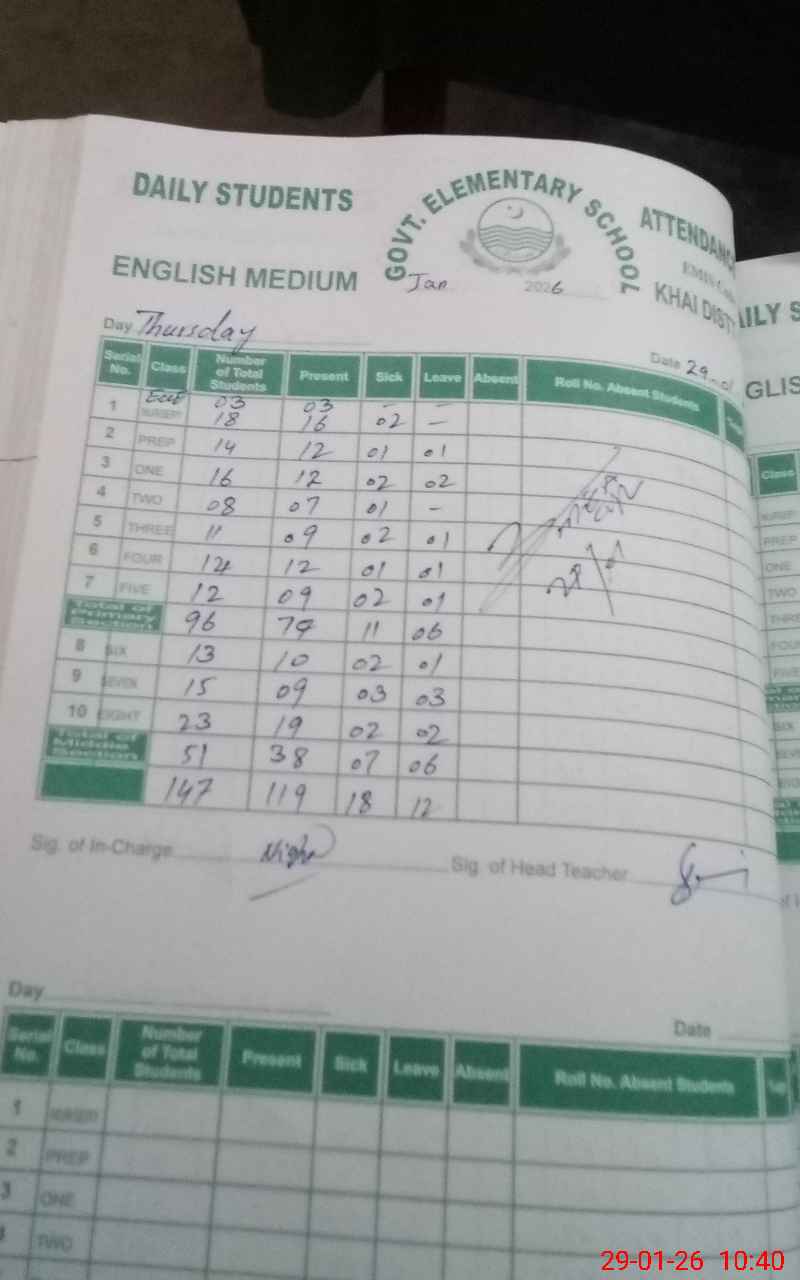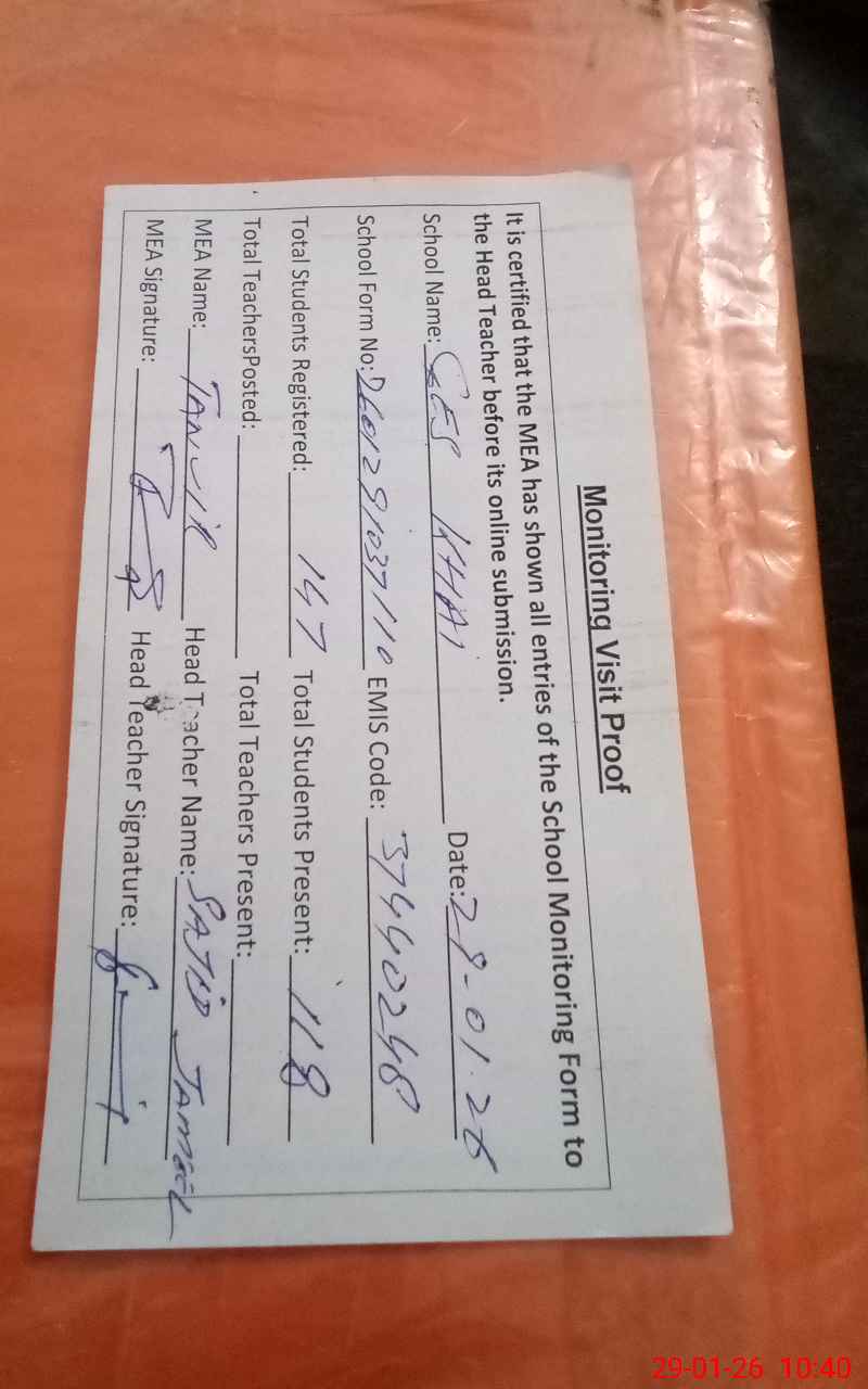 | Attendance Register | Head Teacher | MEA with School | Visit Proof |
