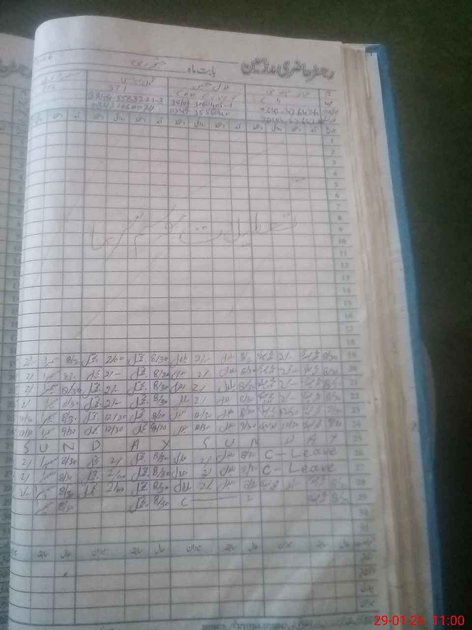 | CNIC | Full Name | Designation | R/C | Absence During Last Calender Month |