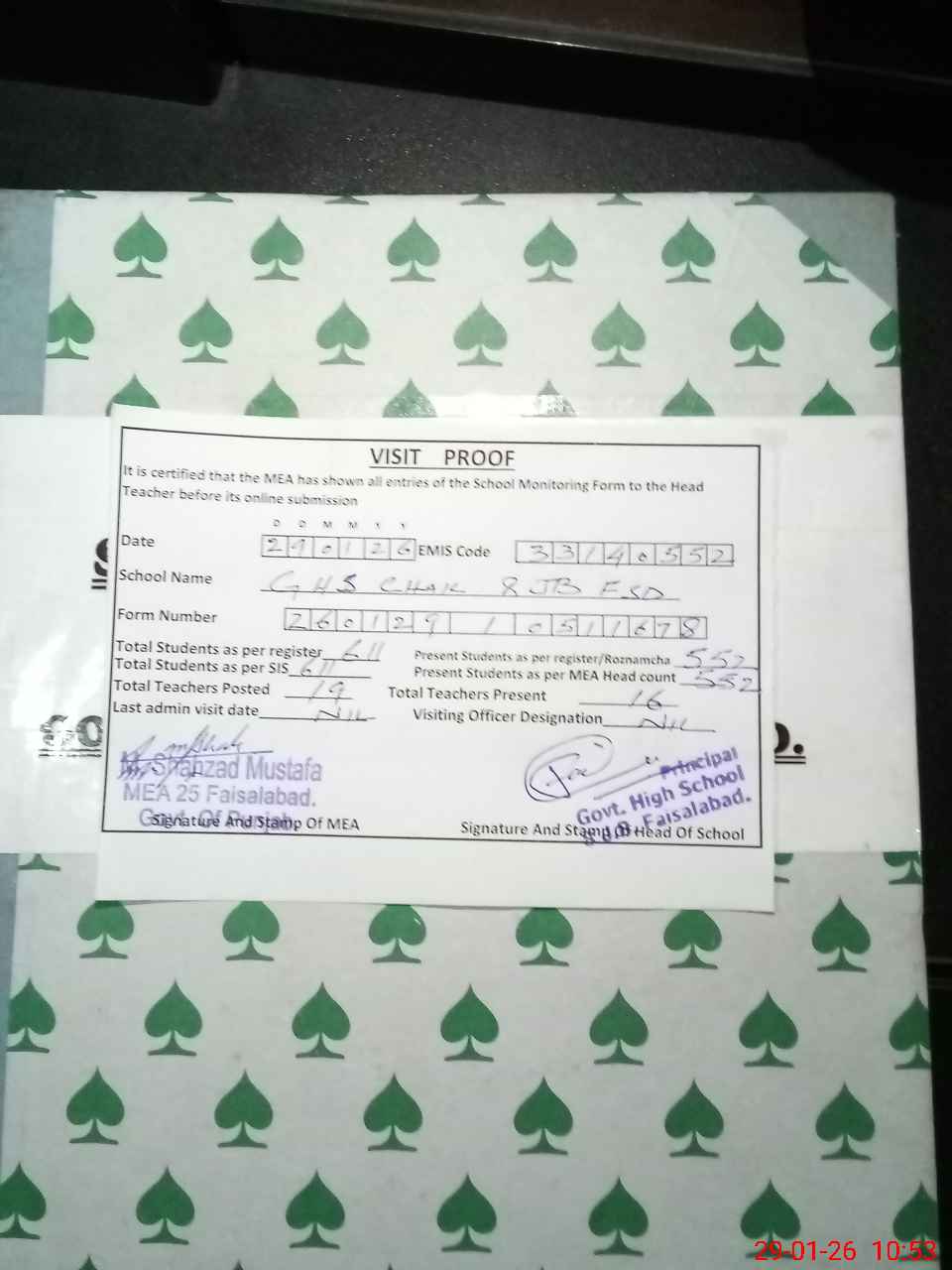 | EMIS Code: 33140552 | Name of School: GHS CHAK 8 JB FSD | |||