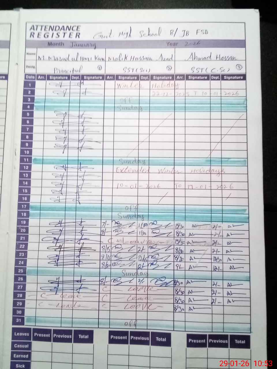 | Leave | Duty | Absent | Maternity | Medical | Ex- Pak |
