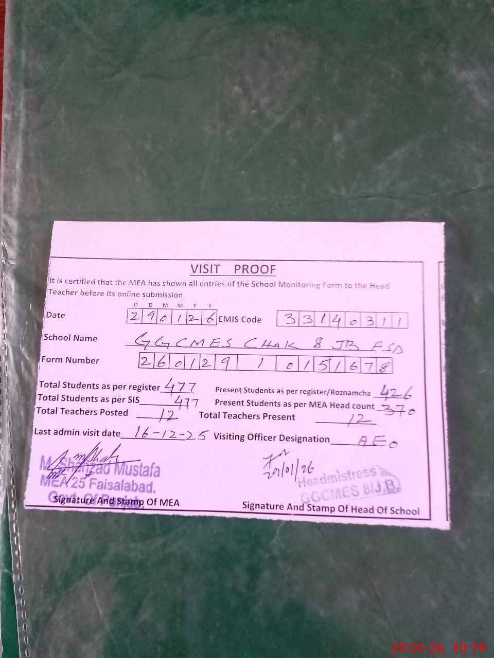 | EMIS Code: 33140311 | Name of School: GGCMES CHAK 8 JB | |||