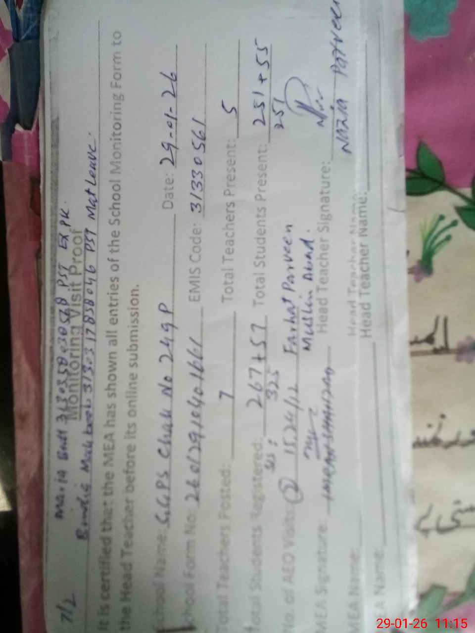 | EMIS Code: 31330561 | Name of School: GGPS CHAK NO. 249/P | |||