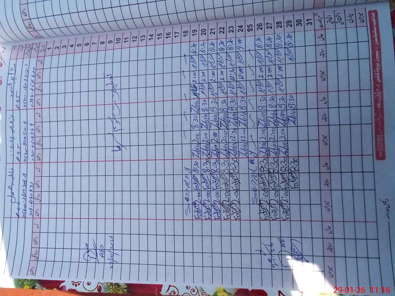| CNIC | Full Name | Designation | R/C | Absence During Last Calender Month |