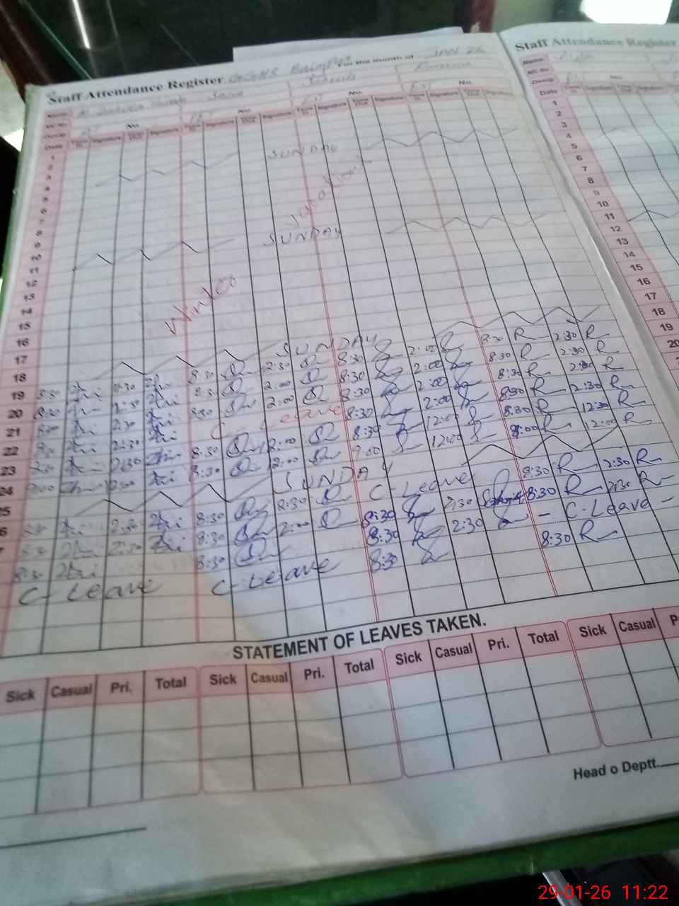 | Leave | Duty | Absent | Maternity | Medical | Ex- Pak |