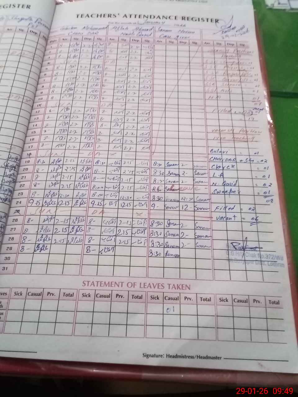 | Attendance Register | Head Teacher | MEA with School | Visit Proof |