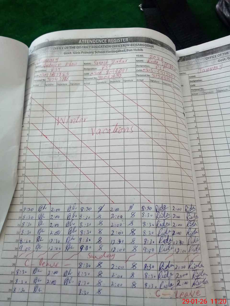 | Name: AM**** KH**** Designation: (School Headmaster's/Headmistress's) PST Phone/Cell Number: 03**** |