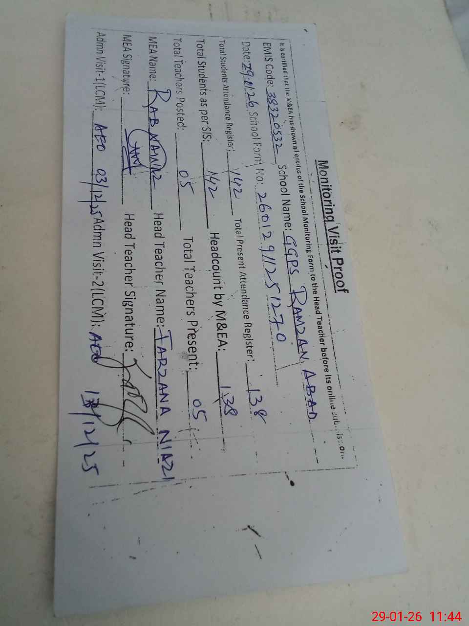 | EMIS Code: 38320532 | Name of School: GGPS RAMZAN ABAD | |||