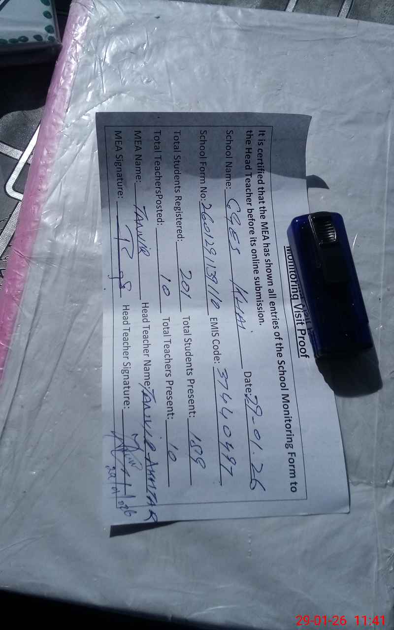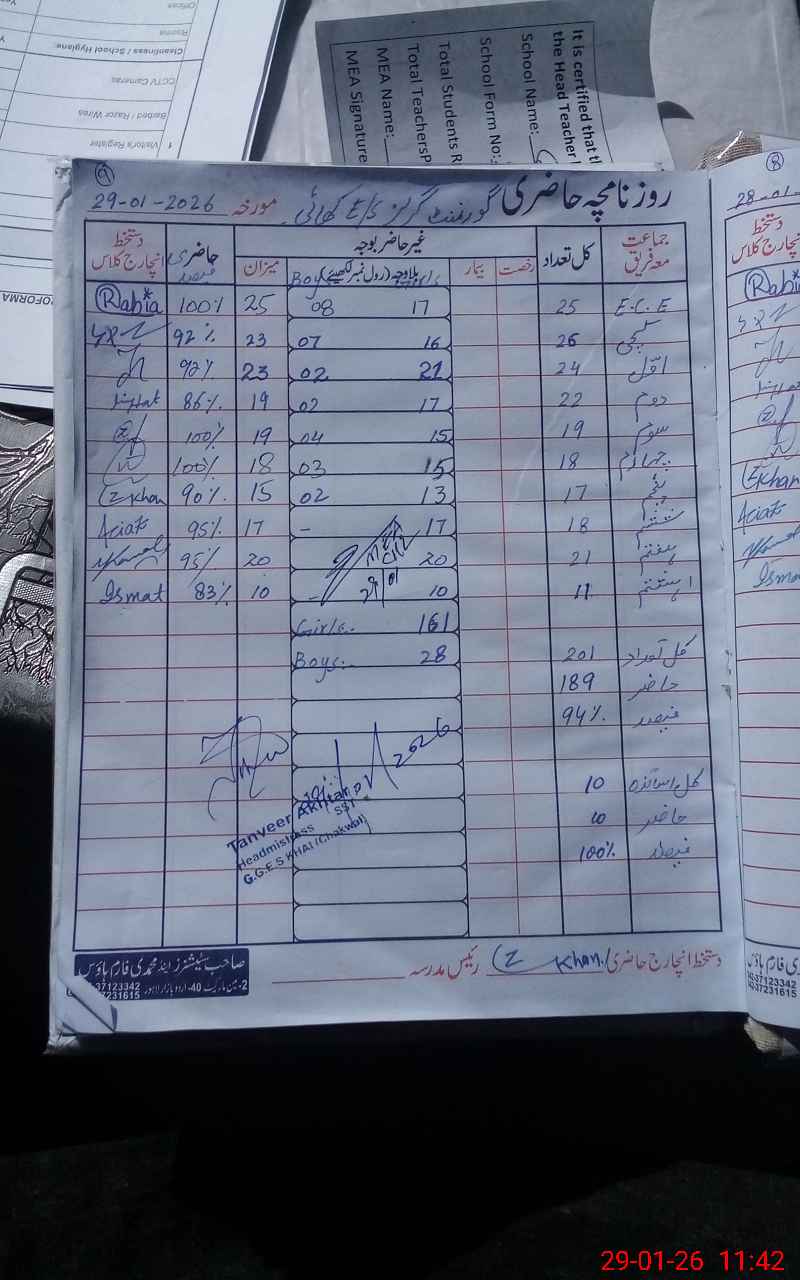 | Attendance Register | Head Teacher | MEA with School | Visit Proof |