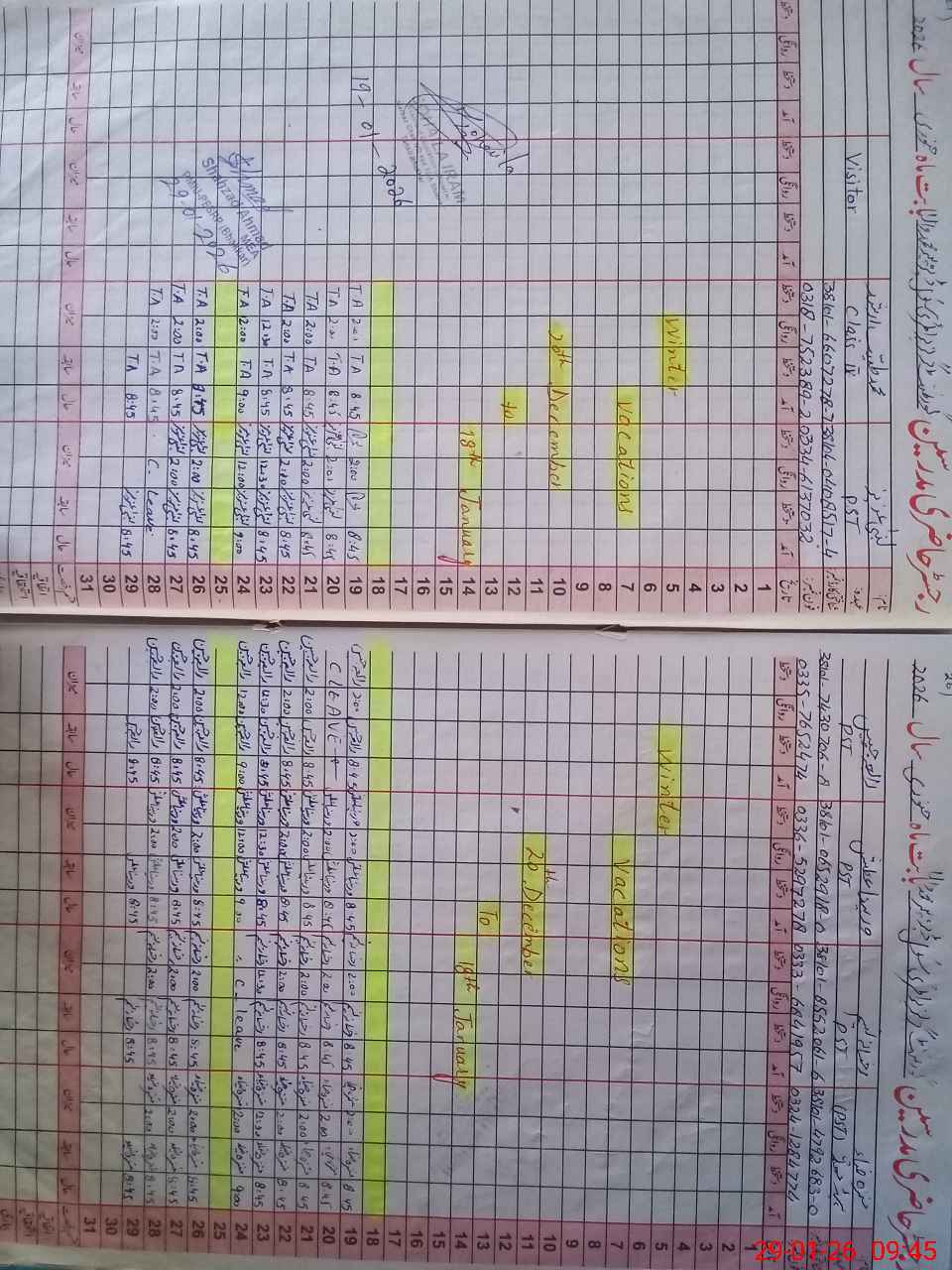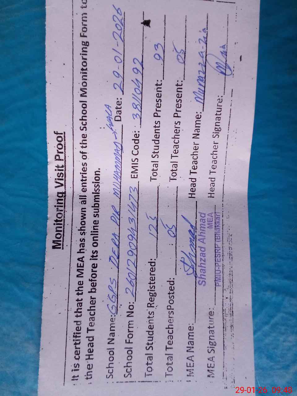 | Attendance Register | Head Teacher | MEA with School | Visit Proof |