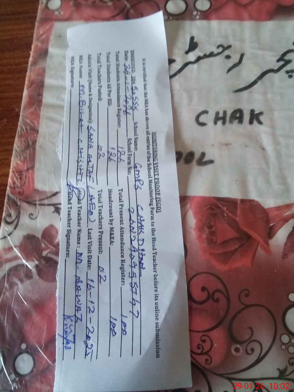 | EMIS Code: 38450555 | Name of School: GMPS CHAK DHOOL | |||