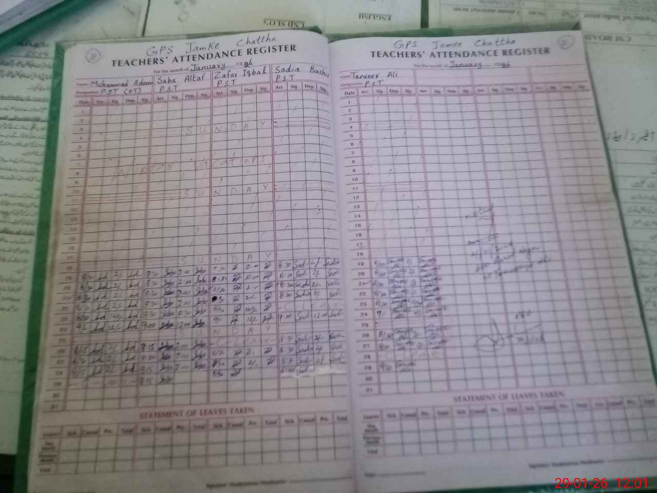 | CNIC | Full Name | Designation | R/C | Absence During Last Calender Month |