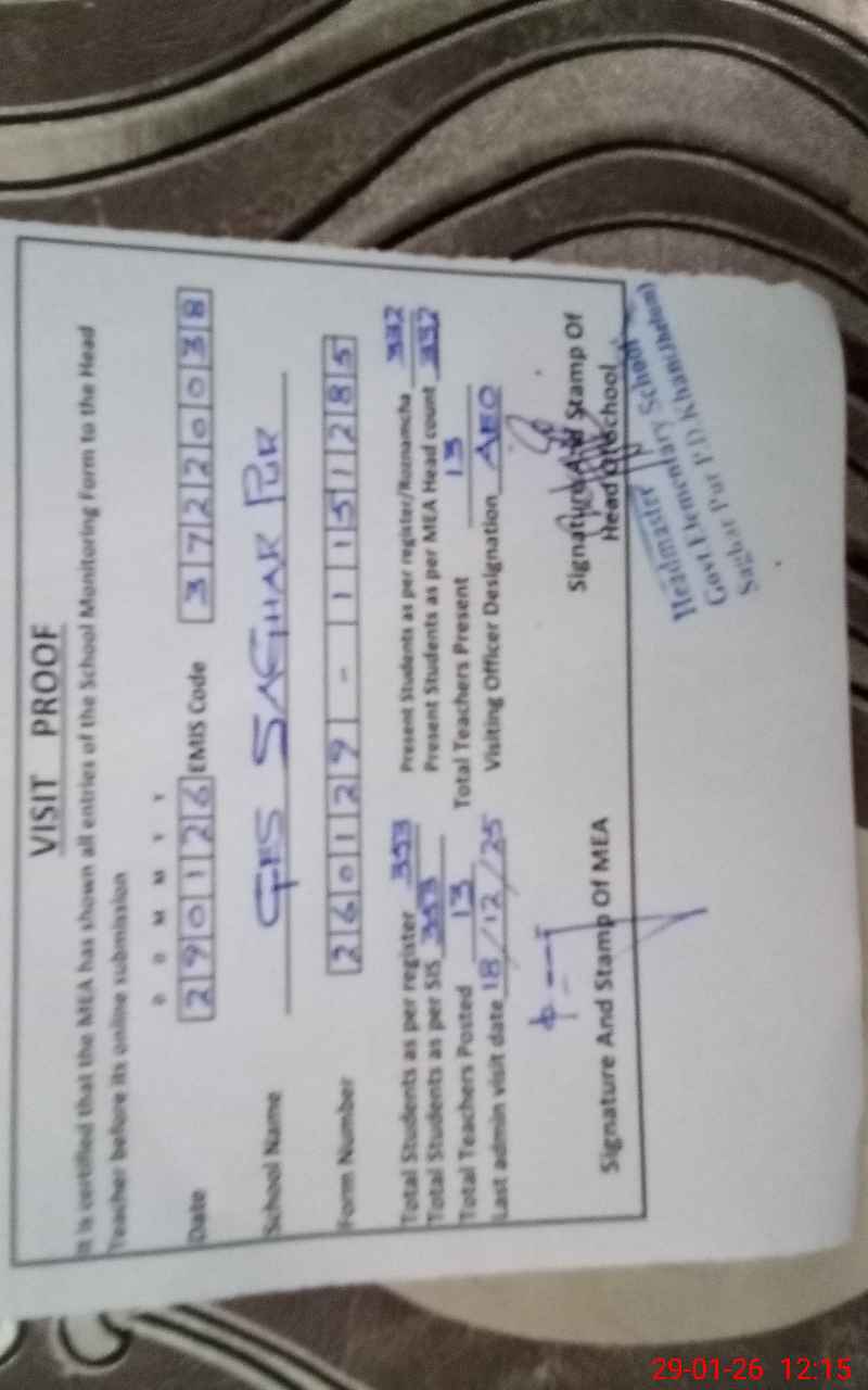 | EMIS Code: 37220038 | Name of School: GES SAGHAR PUR | |||