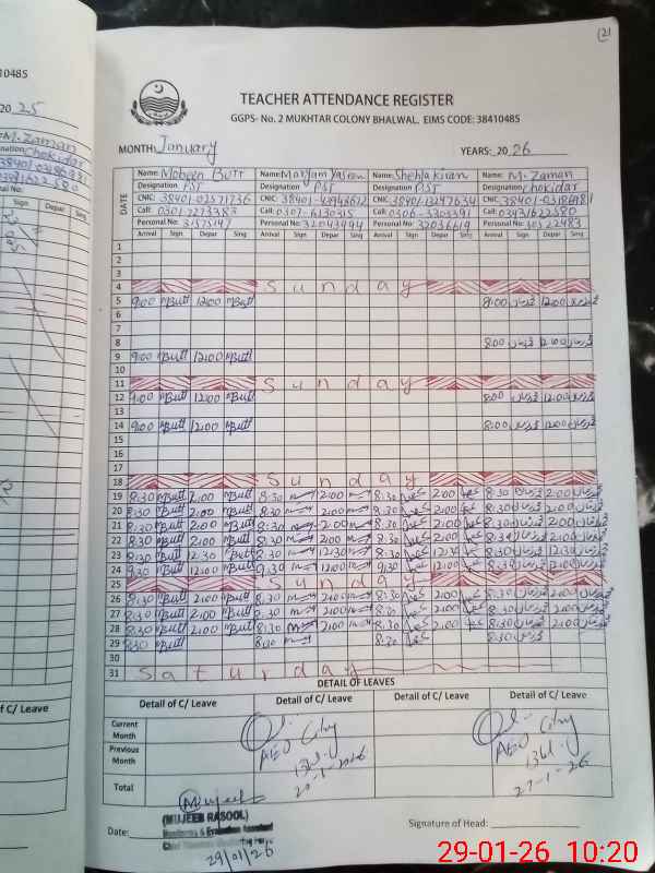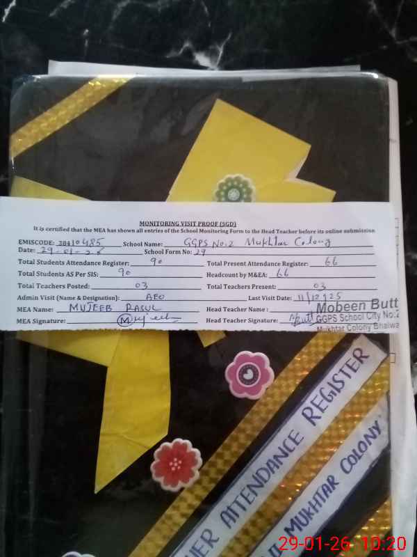 | EMIS Code: 38410485 | Name of School: GGPS NO.2 MUKHTAR COLONY BHALWAL | |||
