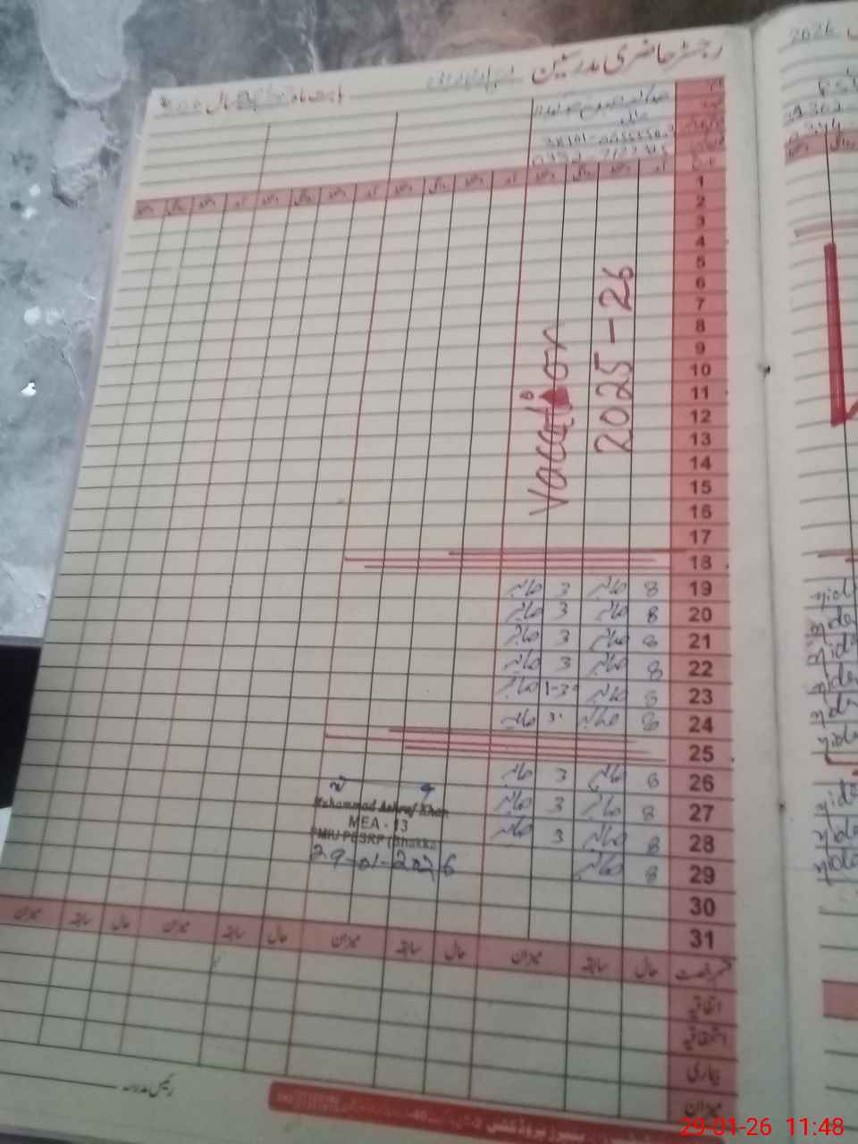 | CNIC | Full Name | Designation | R/C | Absence During Last Calender Month |