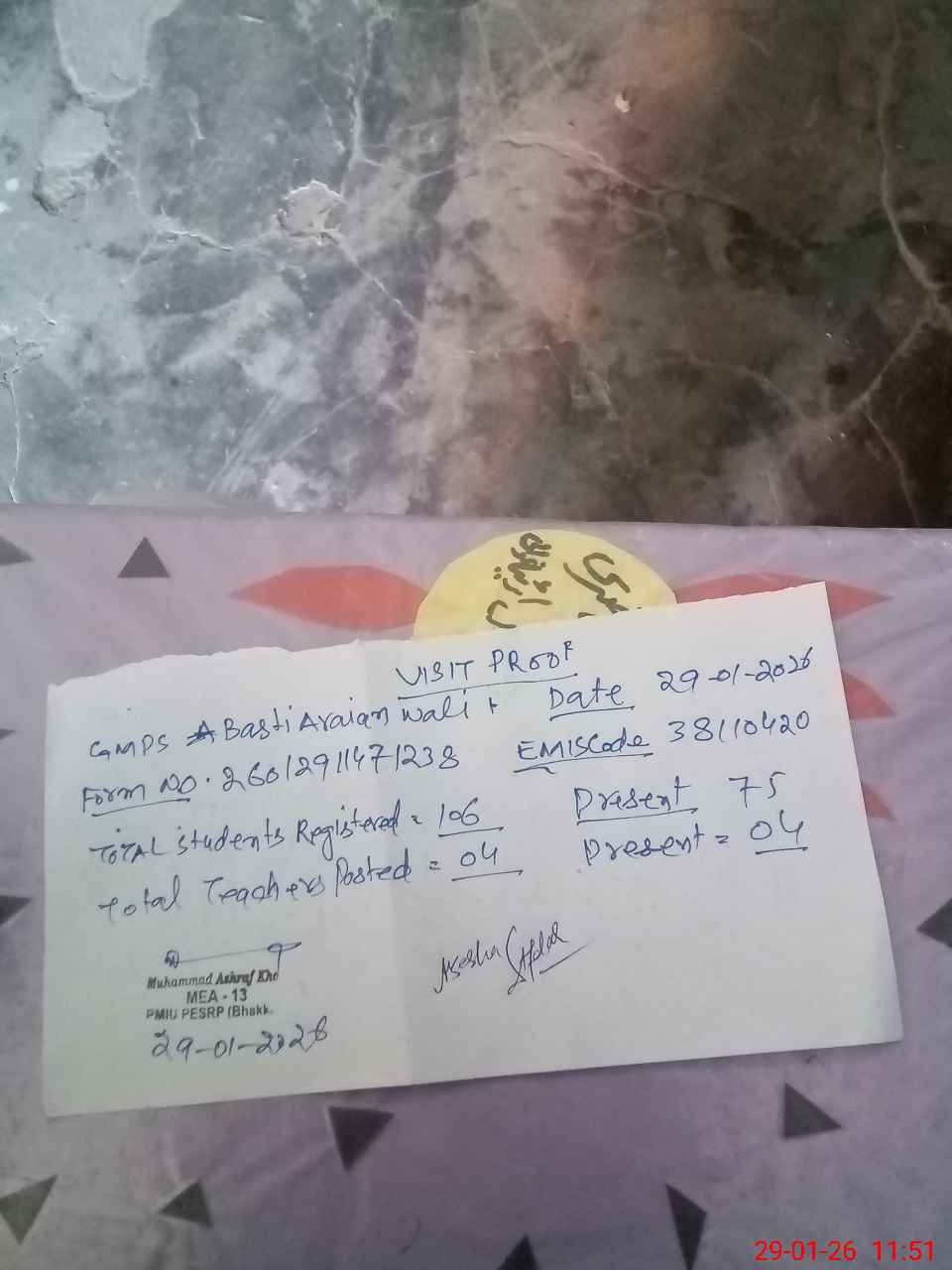 | Monitoring Date: 29-01-2026 | Start Time: 29-01-2026 11:17 AM | End Time: 29-01-2026 11:52 AM | Name of MEA: Mu**** As**** | |
