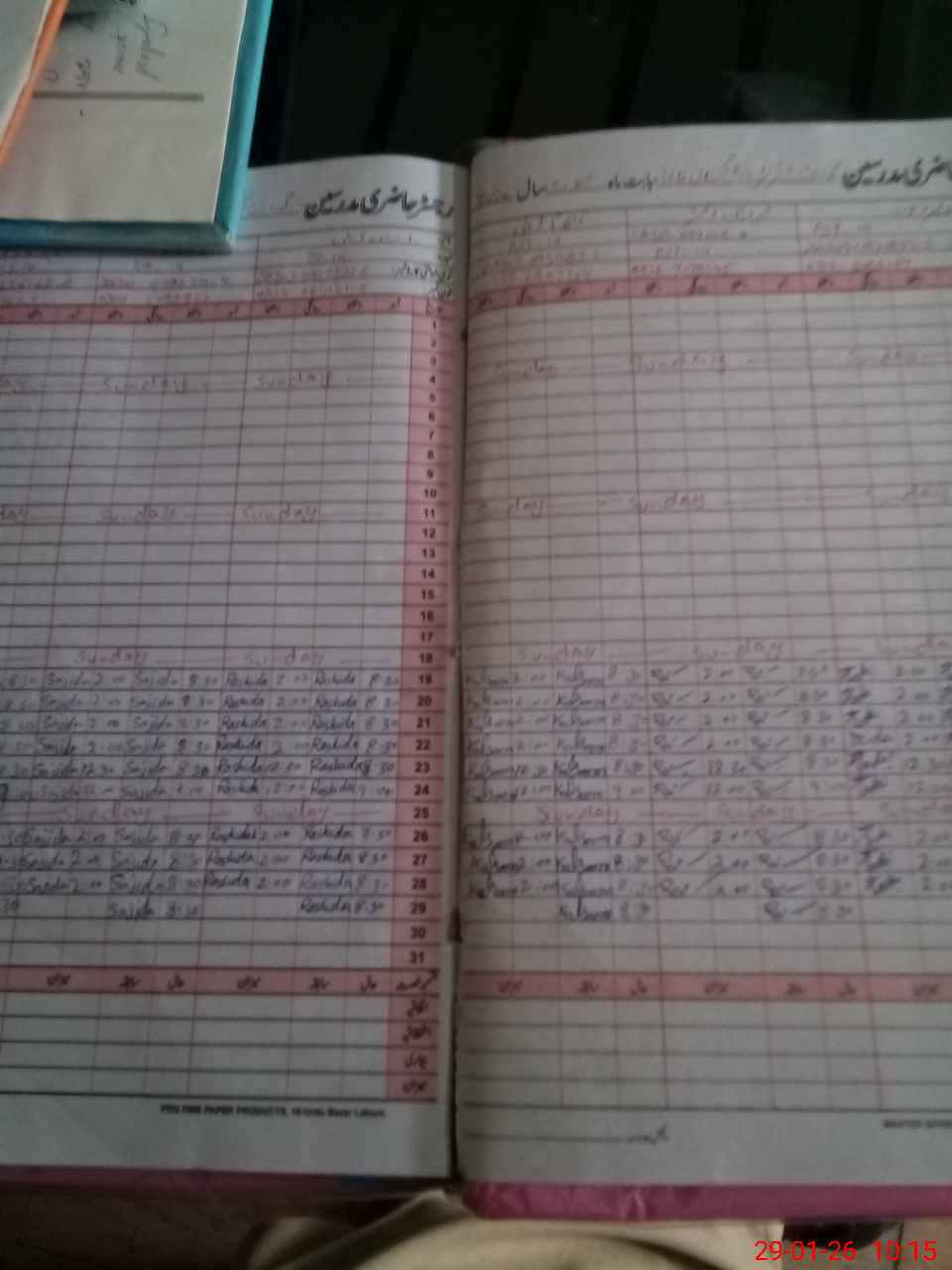 | CNIC | Full Name | Designation | R/C | Absence During Last Calender Month |