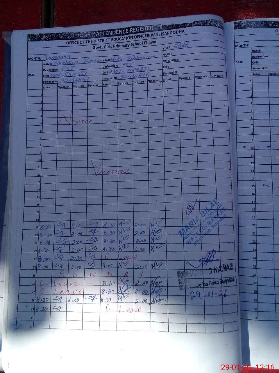 | Name: SH**** KA**** Designation: (School Headmaster's/Headmistress's) PST Phone/Cell Number: 03**** |