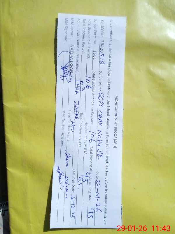 | EMIS Code: 38420518 | Name of School: GGPS CHAK NO.114 SB | |||