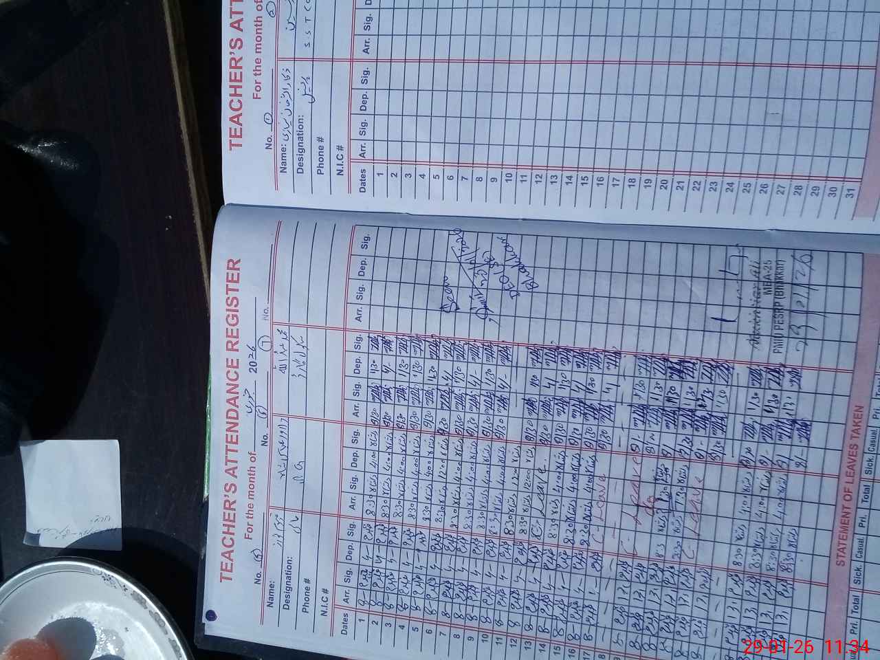 | CNIC | Full Name | Designation | R/C | Absence During Last Calender Month |