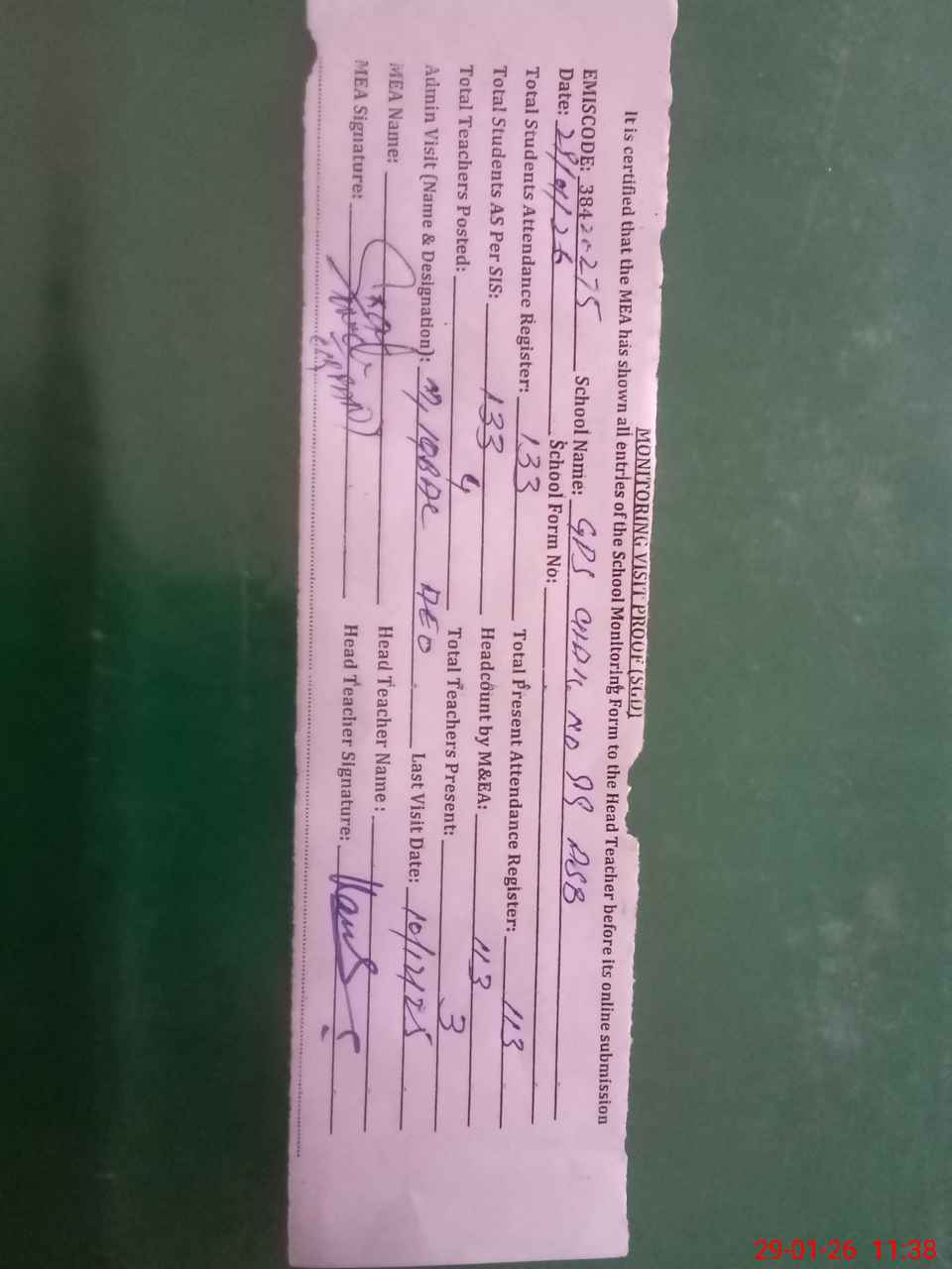 | EMIS Code: 38420275 | Name of School: GPS CHAK NO.99 A-SB | |||