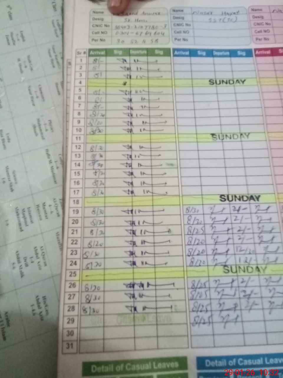 | CNIC | Full Name | Designation | R/C | Absence During Last Calender Month |