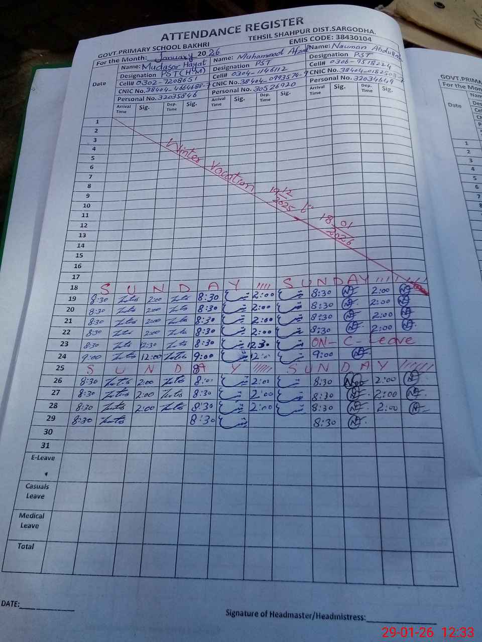 | Name: MU**** HA**** Designation: (School Headmaster's/Headmistress's) PST Phone/Cell Number: 03**** |
