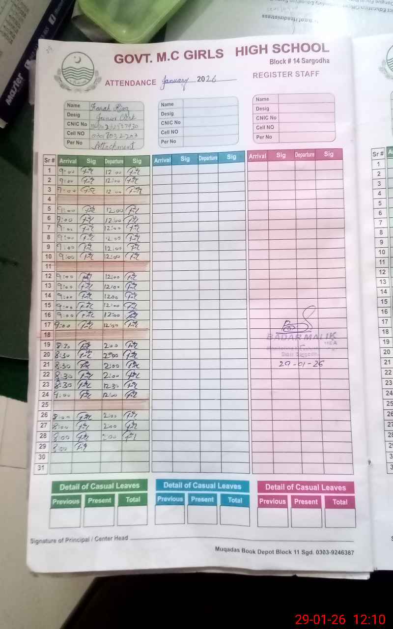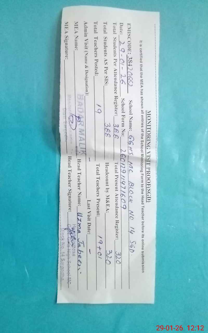 | EMIS Code: 38420662 | Name of School: GGHS MC BLOCK NO.14 SARGODHA | |||