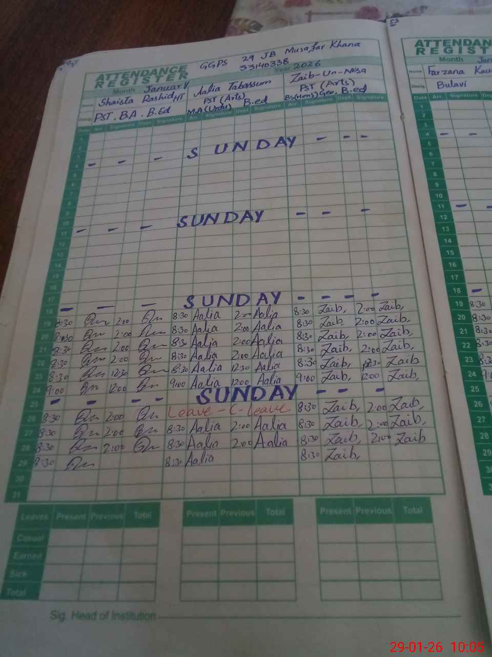 | Remarks (Use Separate Page if Required): Last month AEO Alia Irshad was on Maternity leave so admin visit not conducted | |||||
