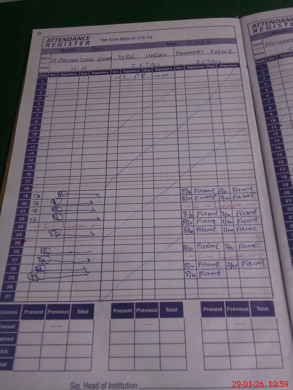 | CNIC | Full Name | Designation | R/C | Absence During Last Calender Month |