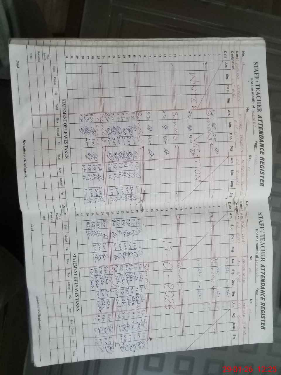 | Leave | Duty | Absent | Maternity | Medical | Ex- Pak |