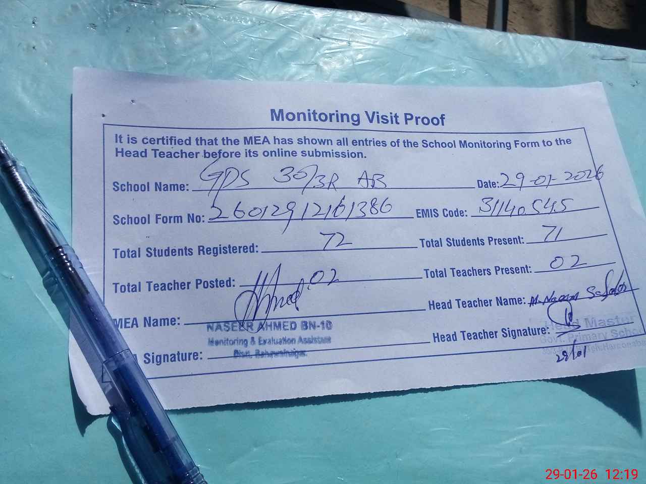 | EMIS Code: 31140545 | Name of School: GPS AZAFI BASTI 30/3-R | |||