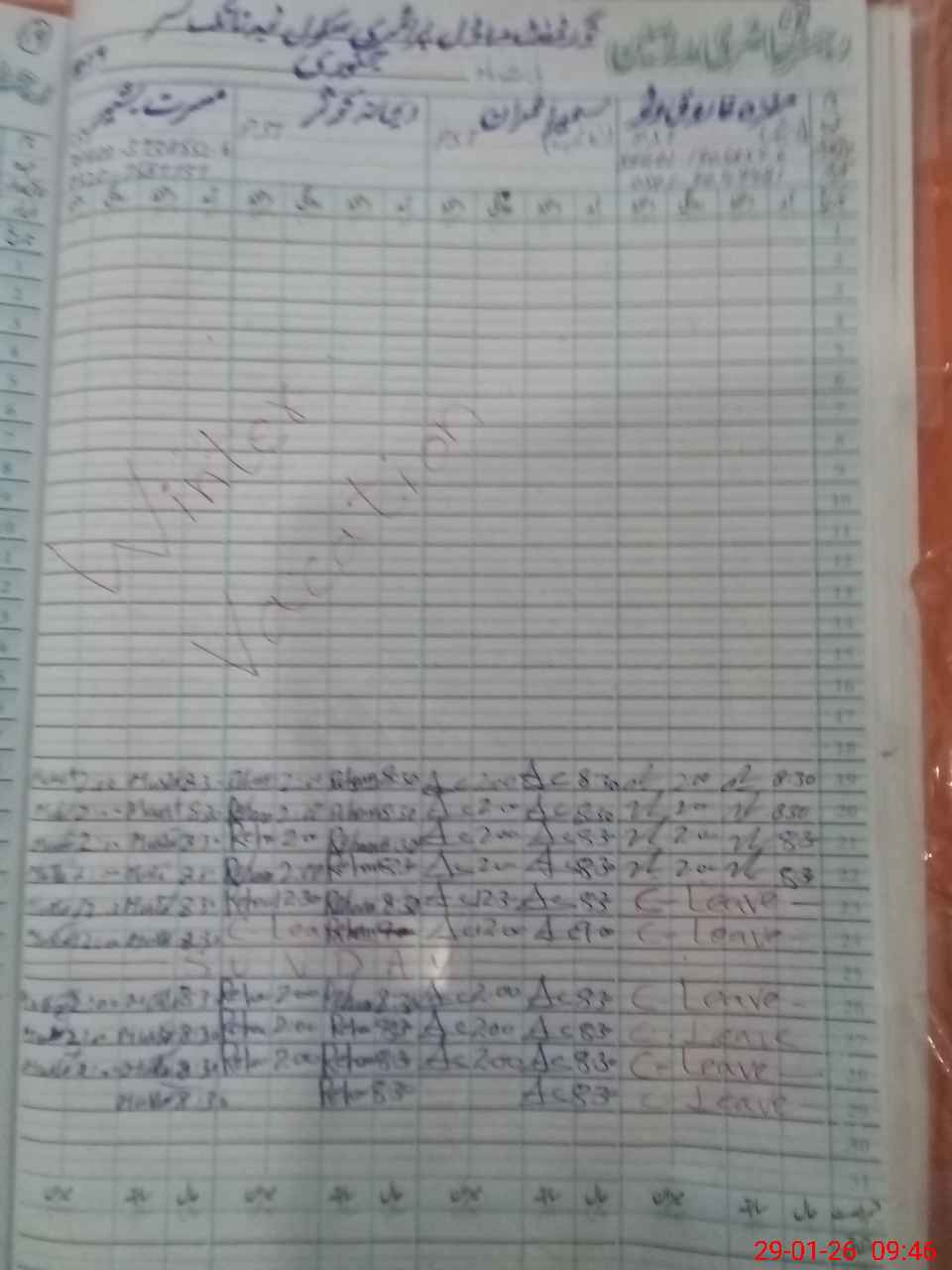 | CNIC | Full Name | Designation | R/C | Absence During Last Calender Month |