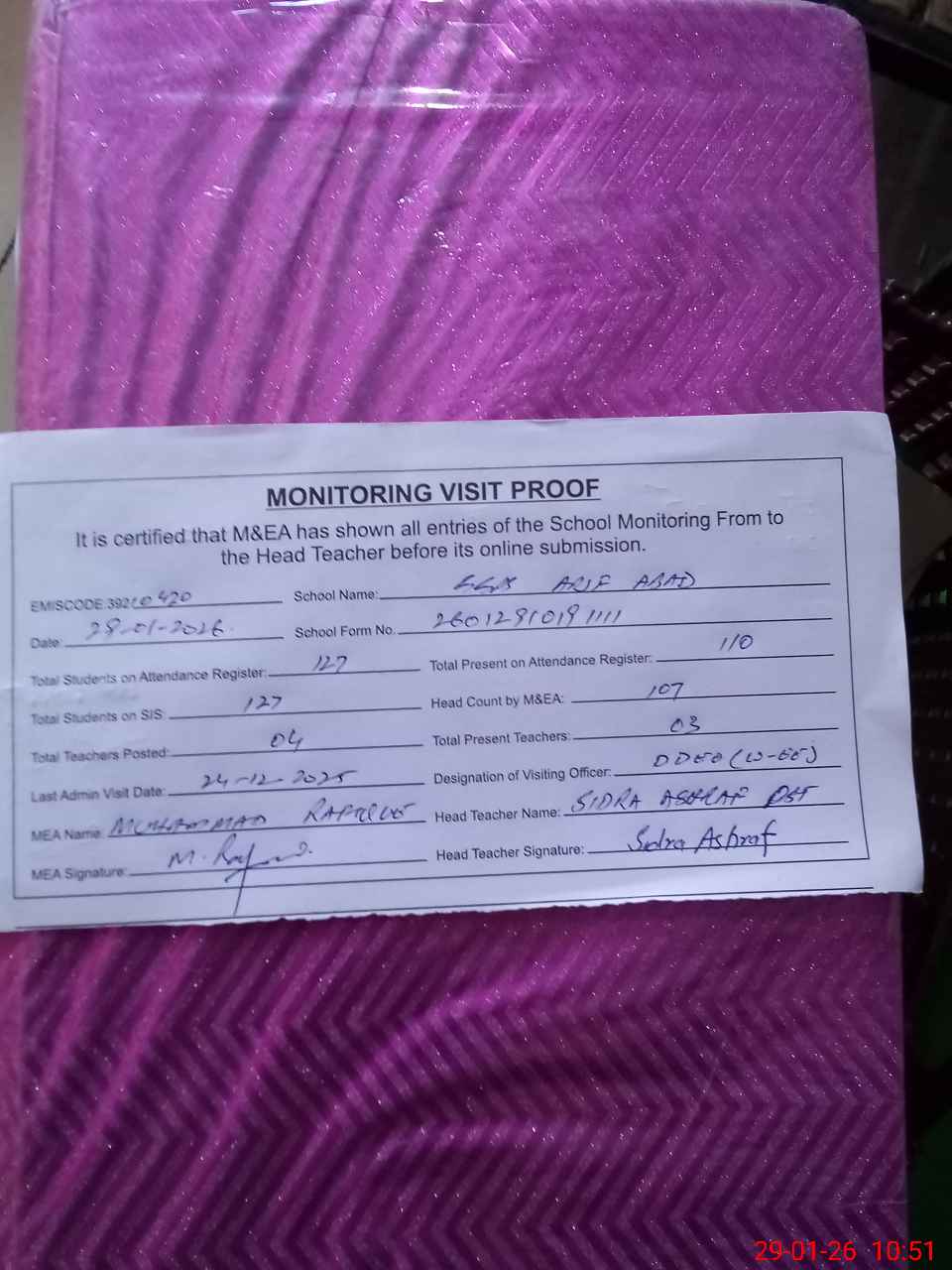 | EMIS Code: 39210420 | Name of School: GGPS ARIF ABAD | |||