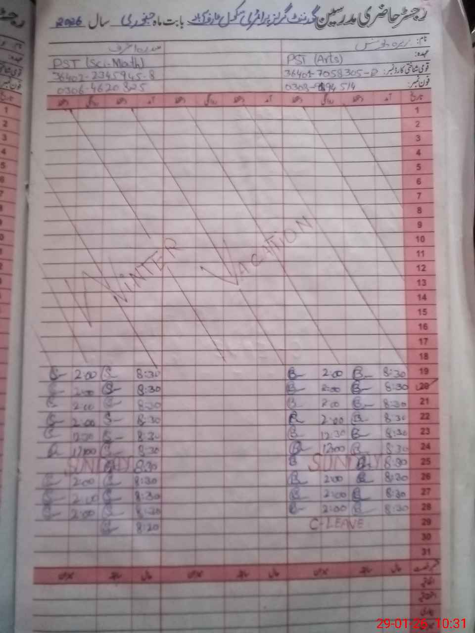 | Name: Ri**** Sa**** Designation: (School Headmaster's/Headmistress's) PST Phone/Cell Number: 03**** |
