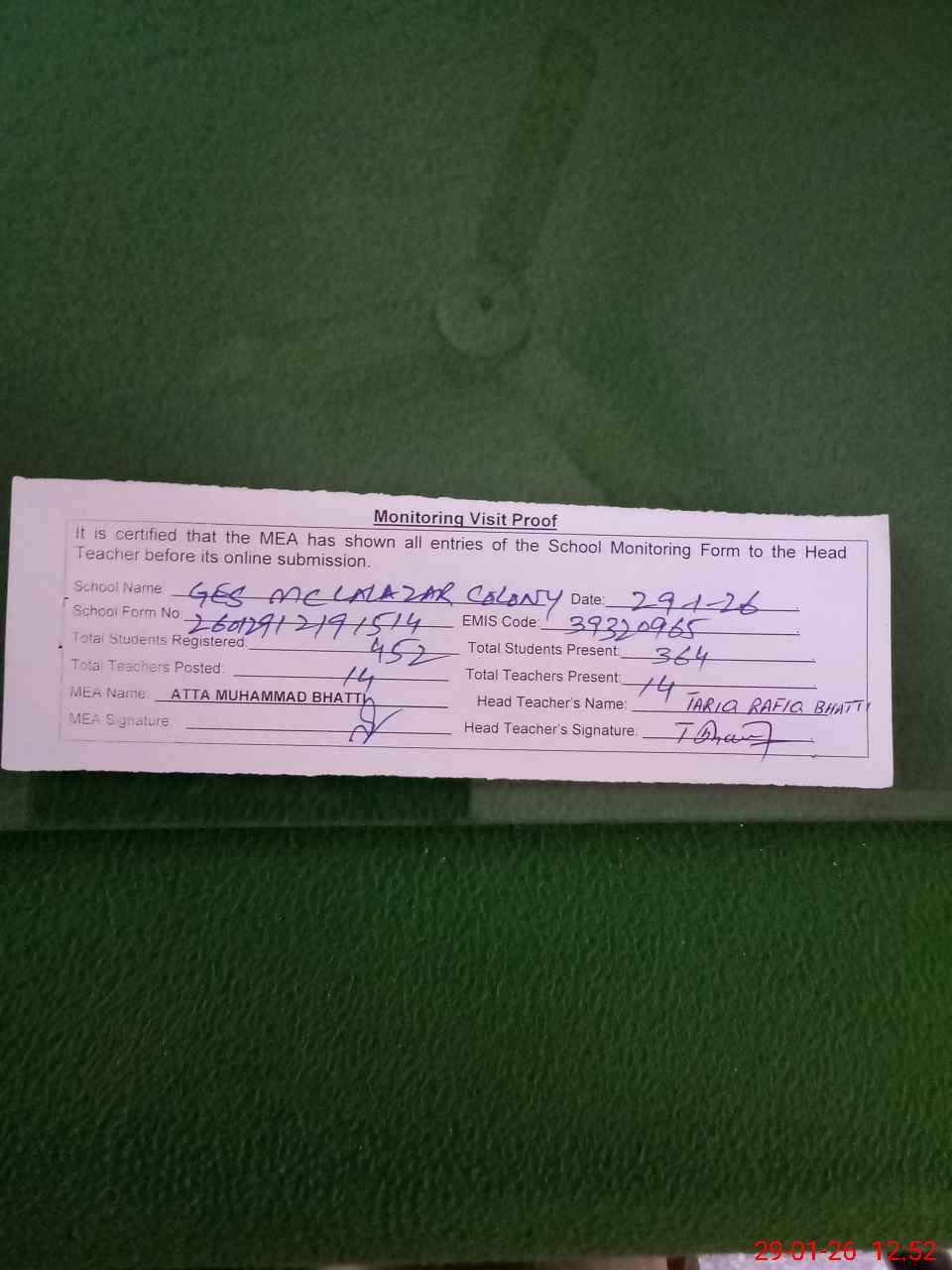 | EMIS Code: 39320965 | Name of School: GES MC LALAZAR COLONY | |||