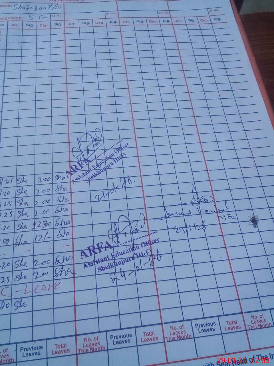 | CNIC | Full Name | Designation | R/C | Absence During Last Calender Month |