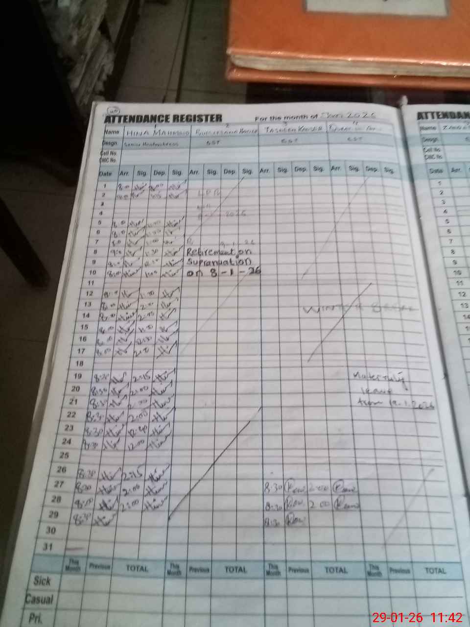 | 00**** | NA**** SH**** | JUNIOR CLERK | Regular | 0 | 31 | 0 | 0 | 0 | 0 | 0 | 0 | 0 | Other |