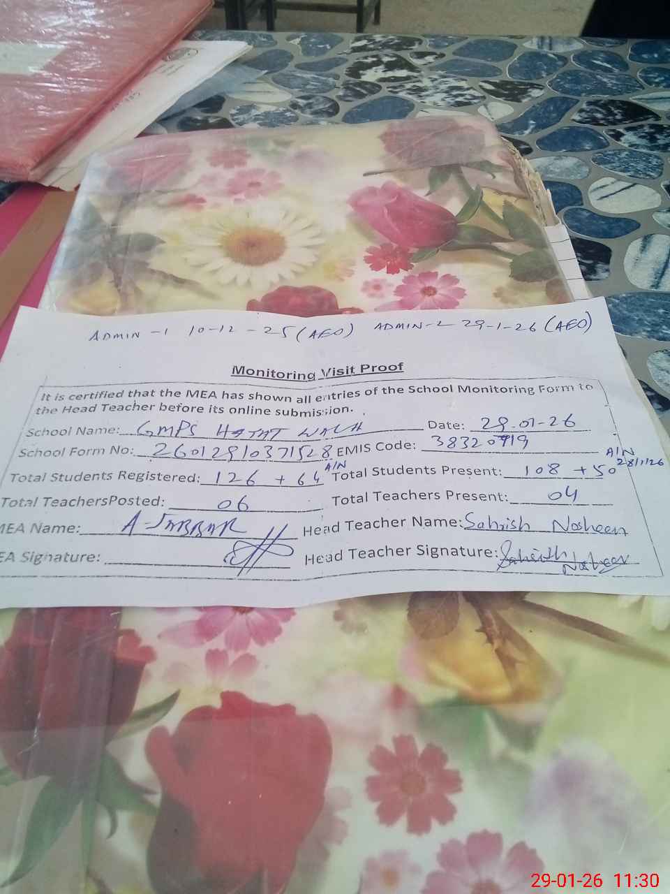 | EMIS Code: 38320719 | Name of School: GMPS HAYAT WALA | |||