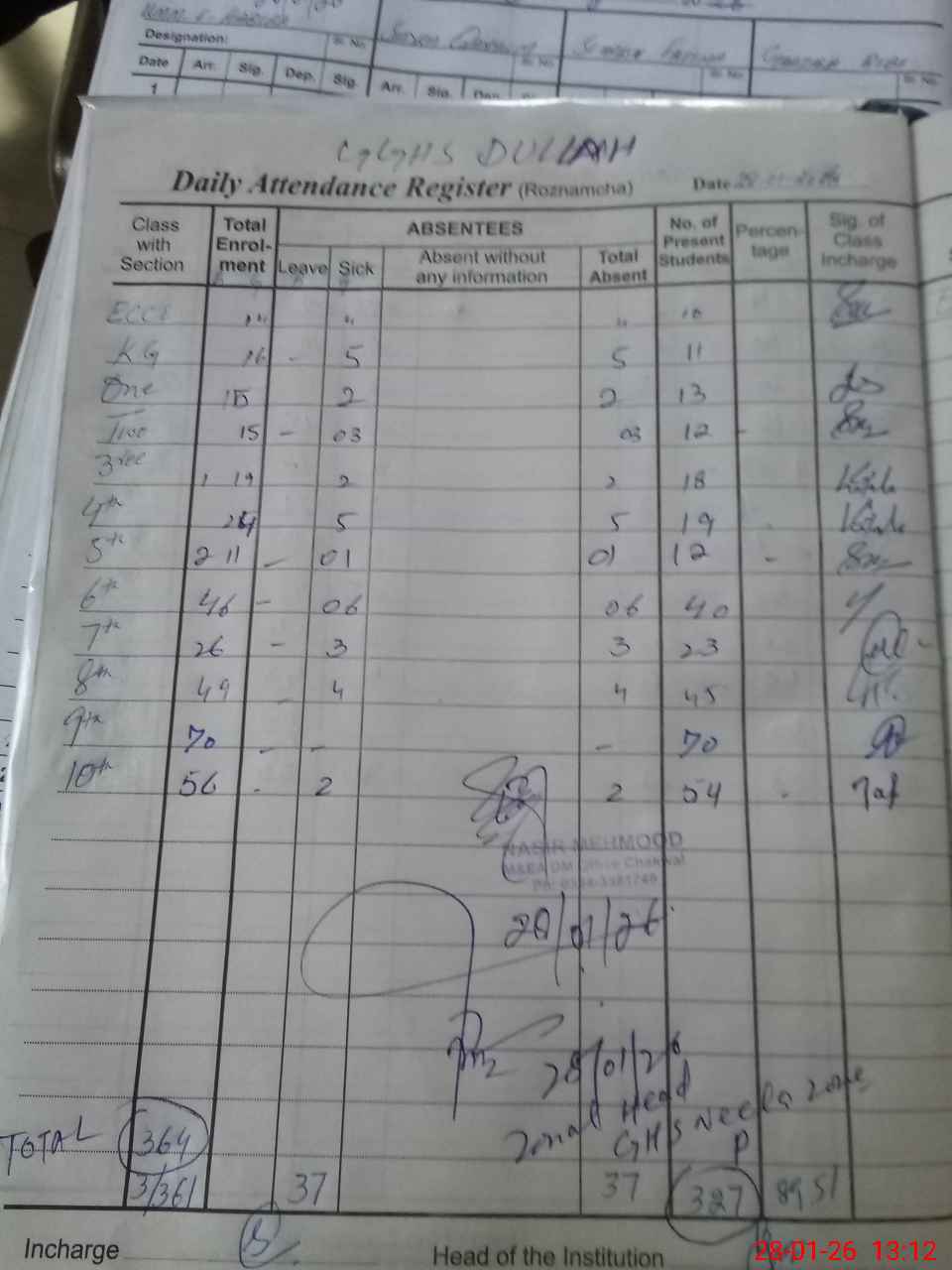 | Attendance Register | Head Teacher | MEA with School | Visit Proof |
