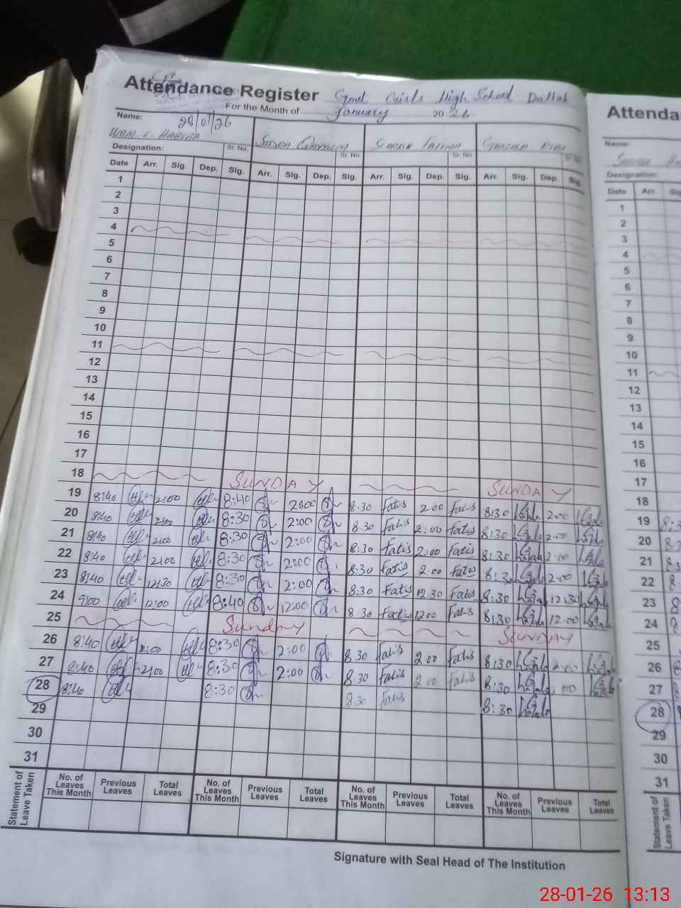 | CNIC | Full Name | Designation | R/C | Absence During Last Calender Month |