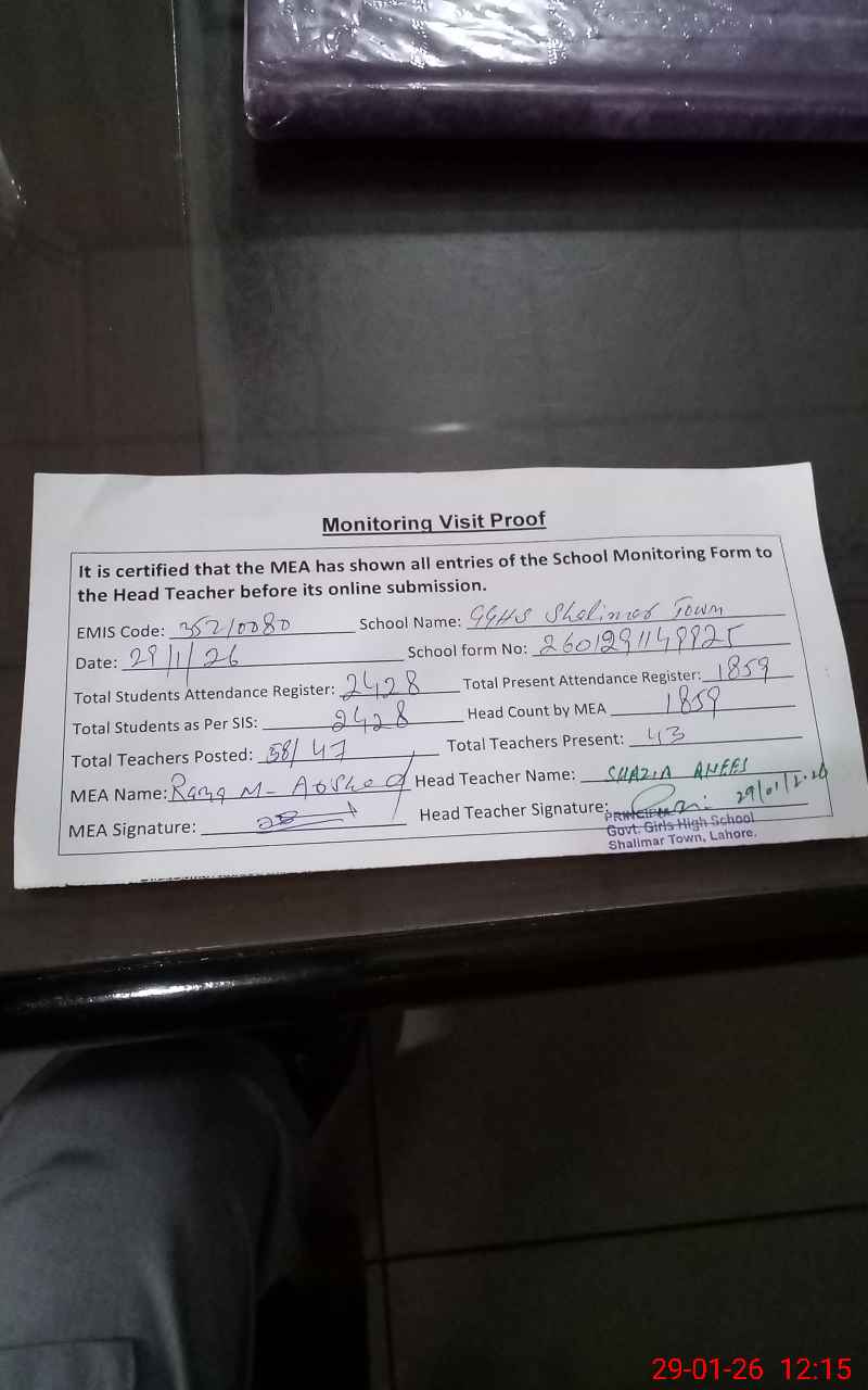 | EMIS Code: 35210080 | Name of School: GGHS SHALIMAR TOWN LAHORE | |||