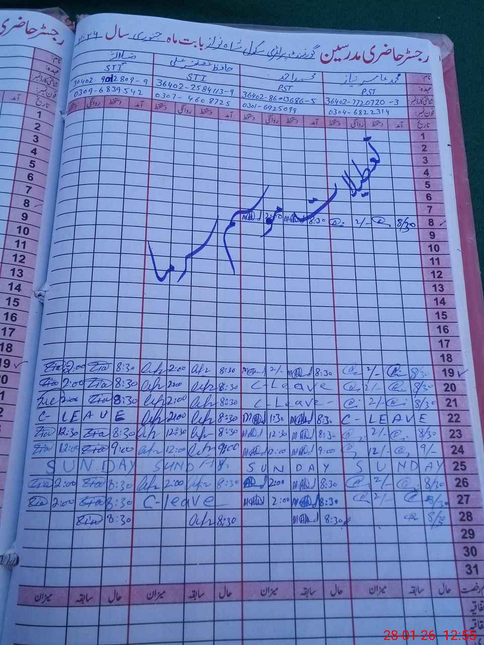 | 36**** | Mu**** Ah**** | ESE Maths | Contract | 0 | 0 | 0 | 0 | 0 | 0 | 0 | 0 | 0 | Absent (Un-Authorized) |