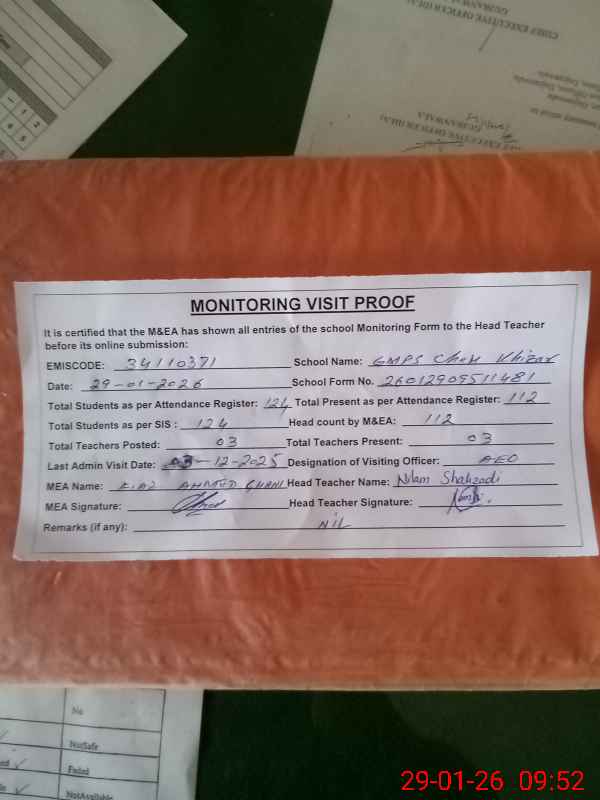 | EMIS Code: 34110371 | Name of School: GMPS CHAK KHIZAR | |||