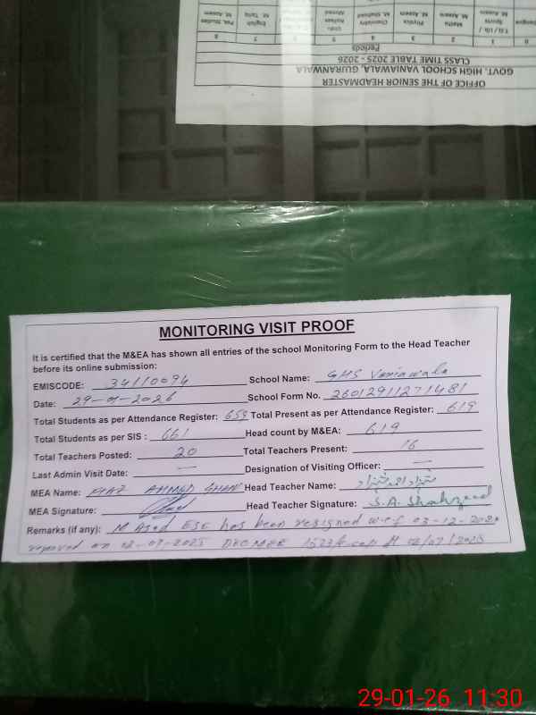 | EMIS Code: 34110094 | Name of School: GHS VANIA WALA | |||