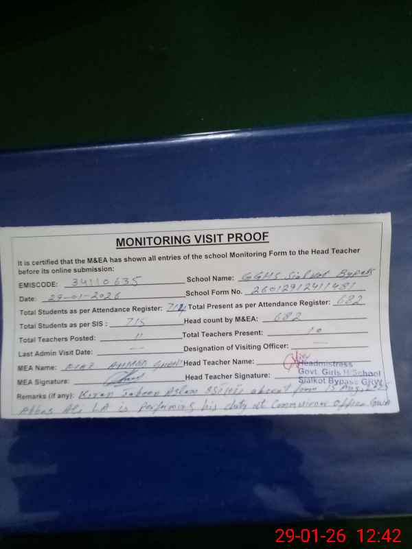 | EMIS Code: 34110635 | Name of School: GGHS SIALKOT BYPASS | |||