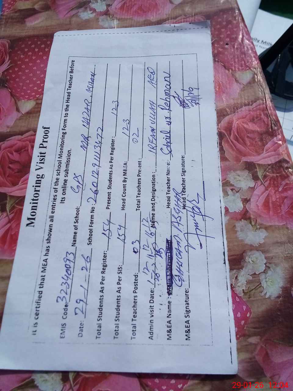 | EMIS Code: 32340093 | Name of School: GPS MIR HAZAR KHAN | |||