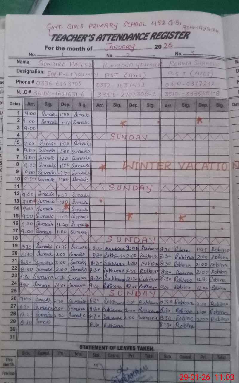 | Name: SU**** HA**** Designation: (School Headmaster's/Headmistress's) PST Phone/Cell Number: 03**** |