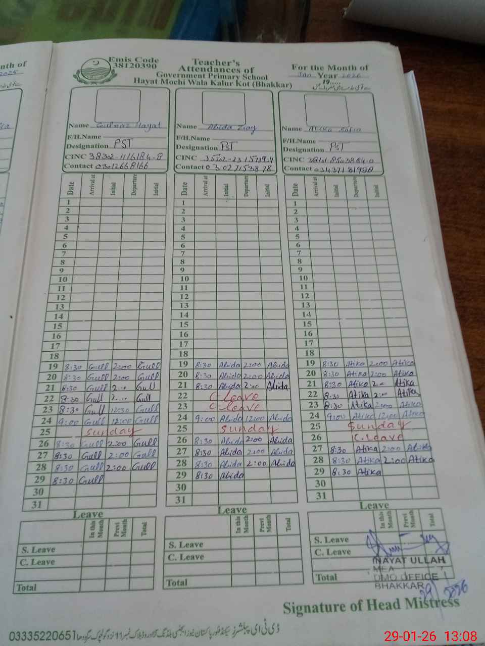 | EMIS Code: 38120390 | Name of School: GPS HAYAT MOCHI WALA | |||