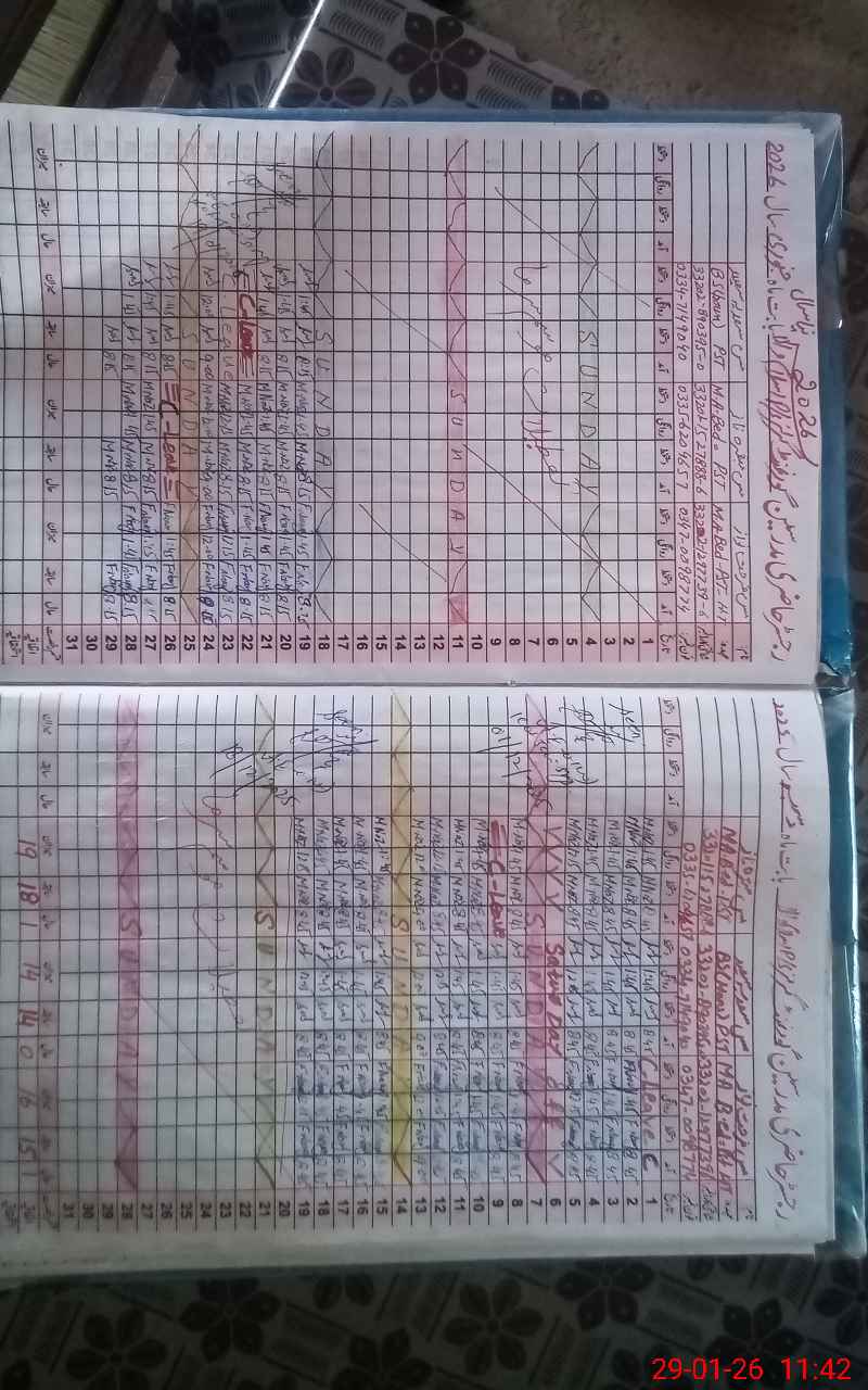 | CNIC | Full Name | Designation | R/C | Absence During Last Calender Month |